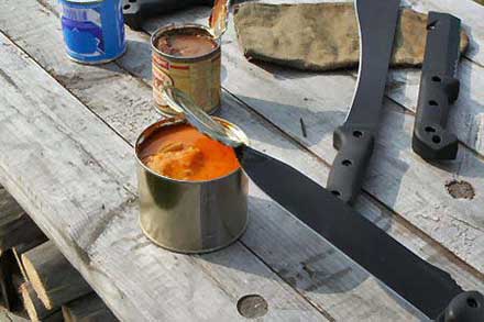 Независимо от результатов охоты и рыбалки, в рационе любителя отдыха на природе всегда присутствует эта доступная дичь — консервы. Понятно, что банку можно открыть и пряжкой солдатского ремня, что не раз приходилось проделывать нашим уважаемым экспертам во времена срочной службы, но в данном случае у нас были ножи.