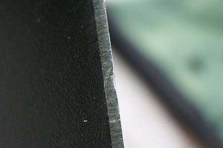 Результат нас порадовал, и вот почему: мы уже отмечали, что металл ножей термообработан оптимальным образом, при встрече с заведомо непосильной нагрузкой кромка на этом месте не выкрашивается, а слегка заворачивается в сторону. Такой дефект может быть исправлен с помощью мусата, гладкого камня или обуха второго ножа буквально за пару минут, а выкрашивание потребовало бы полной переточки ножа, что в полевых условиях сделать непросто.