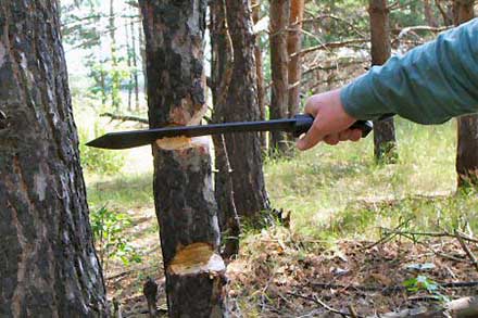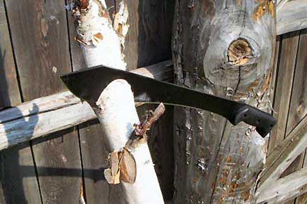 И Мачете, и Боуи обладают хорошей энергией удара и прекрасной рубящей способностью, так что с ними дровяная проблема решалась непринужденно. Елочки потоньше вообще сдавались с одного удара.