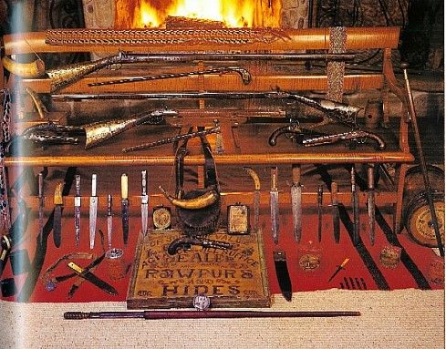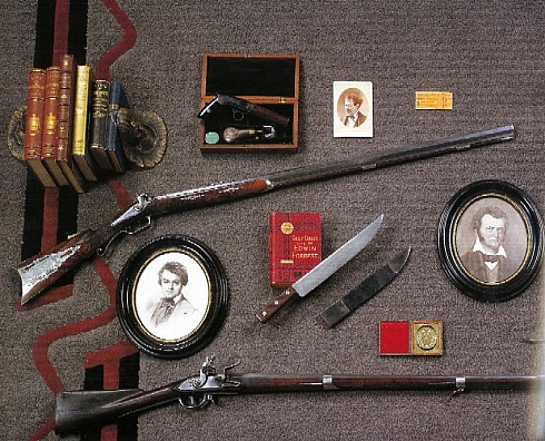 Посередине ранний нож Джима Боуи, подаренный им Эдвину Форесту . Слева на портрете Форест, справа Боуи.