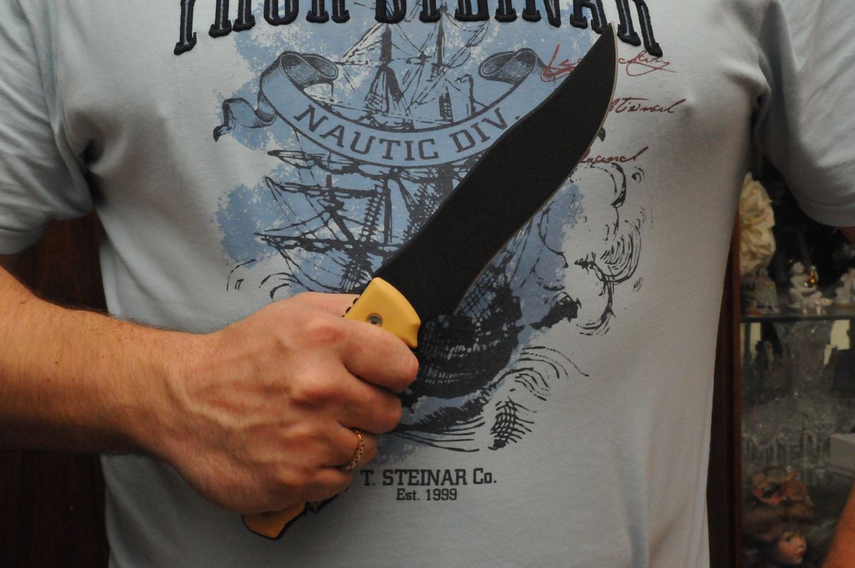Тяжёлый ухватистый нож, в руке- как влитой всеми хватами.